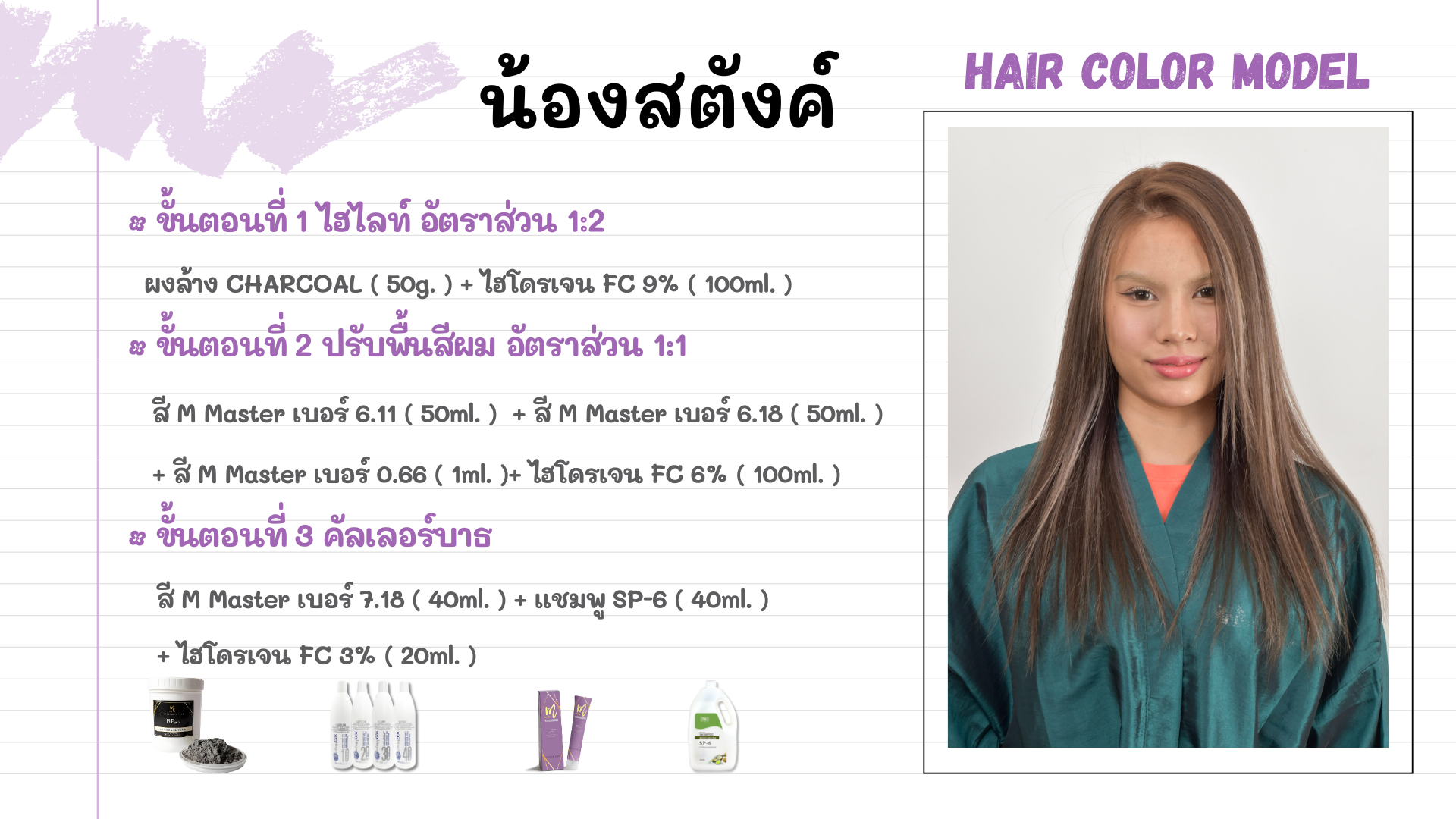 สี M Master เบอร์ 6.11 ( 50ml. ) + สี M Master เบอร์ 6.18 ( 50ml. )+ สี M Master เบอร์ 0.66 ( 1ml. ) + ไฮโดรเจน FC 6% ( 100ml. )