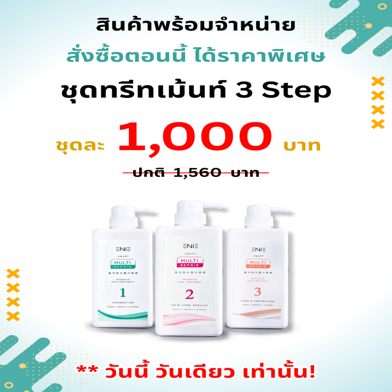 หลังสระผม ทาทรีทเม้นท์ ตัวที่ 1 ให้ทั่วเส้นผม เว้นโคนประมาณ 3 cm. แล้วนวดผมทิ้งไว้ 15-20 นาที แล้วล้างออก