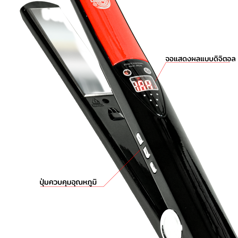 • ควบคุมอุณหภูมิแม่นยำ: จอแสดงผลดิจิตอล LED สลับหน่วยได้ระหว่าง 80-240°C หรือ 170-470°F ปรับความร้อนได้ 10 ระดับ