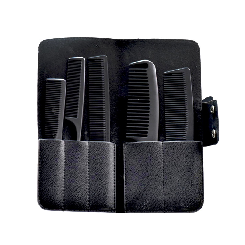 - กระเป๋าจัดเก็บพกพาสะดวก: มาพร้อมกระเป๋าจัดเก็บดีไซน์เรียบหรูสีดำ มีช่องแยกสำหรับจัดเก็บหวีแต่ละชิ้นอย่างเป็นระเบียบ พร้อมตัวล็อกกระดุมที่แน่นหนา ช่วยให้การพกพาและควบคุมอุปกรณ์ทำได้อย่างมืออาชีพ