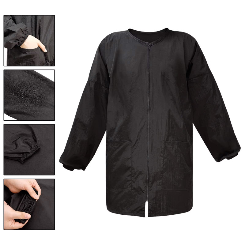 • การปกป้อง: ปกปิดเสื้อผ้าอย่างมิดชิดจากคราบสี คราบน้ำยา เศษผม และสิ่งสกปรกต่างๆ