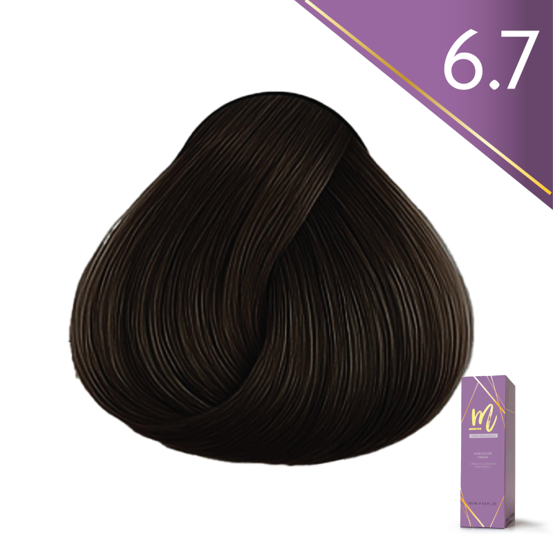 เลือกใช้ 6.7 เมื่อต้องการสีน้ำตาลอุ่นธรรมชาติที่มีความสว่างกว่าเบอร์ 5.7 เล็กน้อย เพื่อให้ได้ประกายผมที่ดูนุ่มสลวยและมีสุขภาพดีในสไตล์พรีเมียม