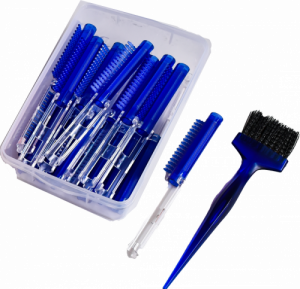 - สอดที่คั่นแกน: นำที่คั่นแกนสอดเข้าไประหว่างแกนดัดผมแต่ละอัน โดยให้วางแนบชิดกับหนังยางที่รัดผม